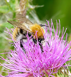 Bevorzugte Pflanzen: Fingerhut (Digitalis), Günsel (Ajuga), Flockenblume (Centaurea), Klee (Trifolium), Disteln, Beinwell (Symphytum), Wildrose, Obstbäume, Luzerne (Medicago), Fetthenne (Sedum), Wiesen-Salbei (Salvia pratensis), Wegwarte (Cichorium).