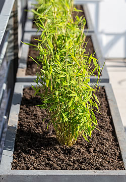 Für viele Hobbygärtner/innen sind Bambusse ein rotes Tuch wegen der berühmtberüchtigten starken Rhizome, die sich mit der Zeit im ganzen Garten breitmachen können. Solche Arten sind beispielsweise Phyllostachys oder Pseudosasa. Eine fachgerecht montierte Rhizomsperre ist beim Auspflanzen dieser Arten unerlässlich. Die Pflanzung in ein Gefäss wäre keine Lösung, da die Rhizome mit ihrer Kraft die Töpfe sprengen würden.Der Schirmbambus (Fargesia) wächst hingegen kompakt horstig und benötigt im Garten keine Rhizomsperre. Daher ist er auch gut für die Pflanzung in Tröge oder grosse Kübel geeignet. Empfehlenswerte Arten und Sorten sind zum Beispiel: