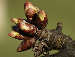 Es gibt nicht nur einen richtigen Zeitpunkt. Je nach Standort oder Sorte muss man sofort oder allenfalls erst in 1 – 2 Wochen das Öl ausbringen. Der Zustand der Knospen verrät, wann es Zeit ist dafür, nämlich dann, wenn sie dicker und klebrig werden, aufspringen, aber noch keine Blättchen sichtbar sind. In dieser Zeit – kurz vor dem Schlüpfen – sind die Larven am empfindlichsten. Erfolgt die Spritzung zu früh, befinden sich die Eier noch im Ruhestadium, und das Mittel kann ihnen nichts anhaben. Wer jedoch zu lange wartet, riskiert Schäden an den zarten Blättchen.Damit das Mittel richtig wirken kann, sollte die Spritzung nicht bei Temperaturen um den Gefrierpunkt, sondern an etwas wärmeren Tagen, ab ca. 5 ° C, erfolgen.