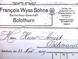 Es war einmal …In einem einzigartigen Solothurner Gartendenkmal wurzeln die Anfänge der Wyss Samen und Pflanzen AG. Urs Viktor Wyss (1770 – 1839), der Grossvater des Firmengründers François Wyss (1836 – 1912), erlernte 1789 bis 1792 die Gärtnerkunst beim Hofgärtner Franz Vogt in der prachtvollen Gartenanlage des Schloss‘ Waldegg.