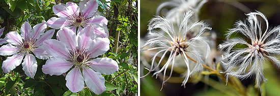 Ist die Blütezeit endgültig vorbei, dürfen wir uns bei der Clematis auf eine weitere Zierde freuen. Die Fruchtstände – silberfarbene flauschige Federbüschel – sind stets dekorativ und bleiben bis weit in den Winter an den Pflanzen haften. Durch die enorme Vielfalt der Arten und Sorten von Waldreben sehen die Fruchtstände immer wieder anders aus. Bei einfachen Sorten entstehen eher die filigranen Fruchtstände und aus grossblumigen und gefüllten Sorten entwickeln sich eher kugelige und buschigere. In getrocknetem Zustand sind sie lange haltbar und machen sich gut in herbstlichen Kränzen oder Gestecken.