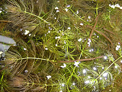 Sehr gute Sauerstoffspender sind Unterwasserpflanzen wie das Hornblatt. Man legt sie einfach ins Wasser oder klemmt sie zwischen Steine. Diese Pflanzen werden von grösseren Fischen wie Kois gerne zerzaust oder gefressen. Abhilfe schafft man, indem man zwei Pflanzkörbe so zusammenbindet, dass sie einen geschlossenen Behälter für die Pflanzen bilden. Gute Sauerstoffproduzenten sind im Weiteren Wasserhahnenfuss und Wasserfeder.Wyss Samen und Pflanzen AG, Christine Beuret