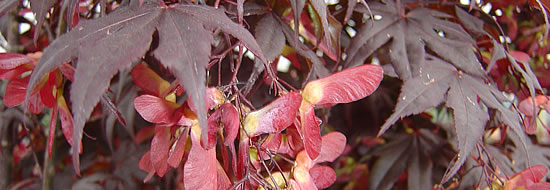 Bemerkungen: malerisch, Zweige können bis zum Boden reichen; bringt rote Flügelfrüchte hervor
