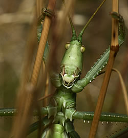 Grosse Sägeschrecke, gefunden im Wallis 2023, frisst u. a. Gottesanbeterinnen.