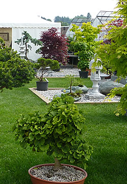 Herr Heer, ich danke Ihnen für den spannenden Einblick in die Welt der Bonsais. Ihr Schlusswort?Es lohnt sich, den Bonsai-Garten im Wyss GartenHaus in Zuchwil, der in Zusammenarbeit mit dem Bonsai-Club Wasseramt entstanden ist, zu besuchen. Auf 270 m2 sind bis zum 28. September 2013 vom Ginkgo im üppigen saftig-grünen Blätterkleid über den filigranen Fächer-Ahorn bis zur knorrigen Kiefer viele Arten zu sehen, Mini-Exemplare genauso wie stattliche Gartenbonsais. Markante Steine und asiatische Steinlaternen bereichern die Ausstellung zusätzlich. Schliesslich gestatte ich mir noch etwas Eigenwerbung: Der Bonsai-Club Wasseramt ist am Sommergarten-Festival vom 23. bis 25. August 2013 bei Wyss in Zuchwil mit einem Stand vertreten. Gerne beantworten wir dort Fragen rund um dieses faszinierende Thema.