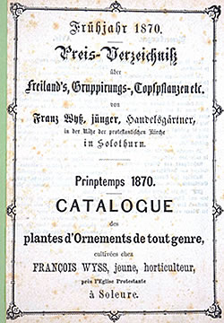 Auf eine sehr lange Tradition zurück geht der Samenhandel bei der Wyss Samen und Pflanzen AG. Auf die von Urs Viktor Wyss 1801 gegründete Erwerbsgärtnerei in Solothurn folgte 1858 die Handelsgärtnerei von Enkel François Wyss, der nachweislich ab 1870 im damals aufkommenden Saatguthandel aktiv war. Man sagt, dass später Handelsreisende – die Vorgänger unserer heutigen Aussendienstmitarbeiter – mit Sämereien im Rucksack unterwegs waren. Sie offerierten Saatgut in Gegenden mit rauerem Klima, wo der Samennachbau nicht gut möglich war. Ein Verkaufsladen für Sämereien wurde in der Zeit um 1900 in Solothurn beim Marktplatz und ab 1913 beim Bieltor geführt.