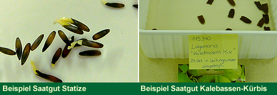Bei einzelnen Samen wird der Embryo (siehe Bild links) zum Vorschein kommen. Es kann auch vorkommen (v. a. bei Lagenaria), dass sich das Wasser bräunlich färbt. Beides ist normal und hat keinen Einfluss auf die Qualität.