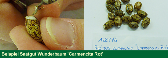 Bei Saatgut mit sehr harter Schale wie es beim Wunderbaum (Ricinus communis) der Fall ist, kann man das kleine Köpfchen an der Samenspitze mit einem Taschenmesser von oben nach unten abknicken, so dass der weisse Embryo ersichtlich wird. Der Samen ist somit fähig, von Anfang an Feuchtigkeit aufzunehmen und keimt dadurch schneller.
