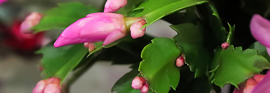Die Heimat des Weihnachtskaktus liegt in Mittelamerika. Der dichtverzweigte Strauch wächst dort auf Bäumen oder Felsen. Er ist ein wahres Blütenwunder. Seine zahlreichen roten, weissen, orangen, lachsfarbenen, rosa, violetten oder sogar zweifarbigen glockenförmigen Blüten haben einen Durchmesser von 2 – 3 cm, sind 4 – 7 cm lang und erfreuen uns in der Weihnachtszeit. Punkto Blühfreudigkeit ist diese Zimmerpflanze den genannten anderen weihnächtlichen Blütenpflanzen mehr als ebenbürtig.