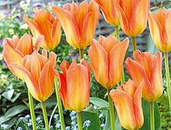 Fosteriana Tulpe ‚Apricot Emperor‘Aparte Tulpe in aprikosenfarbigen Tönen. Früh blühend. 40 cm hoch. Zum Verwildern und als Schnittblume geeignet.