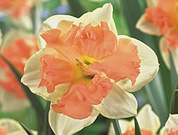 Narzisse ‚Peach Swirl‘Sehr dekorativ. 30 cm hoch. Gefüllt und mittelfrüh blühend. Zum Verwildern und auch zur Gefässbepflanzung geeignet.