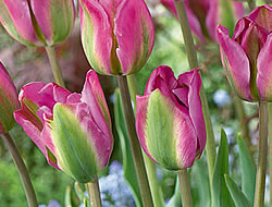 Viridiflora Tulpe ‚Nightrider‘Diese späte blühende Tulpe besticht durch ihre überaus reizvolle Farbkombination. Die violette Sorte mit den grün geflammten Streifen auf jedem Blütenblatt wird 45 cm hoch. Sie ist auch gut als Schnittblume geeignet.