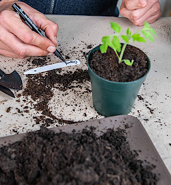 Wichtig: Nicht nur bei einer Pflanzung in ein Gefäss, sondern auch im Gewächshaus oder im Freien jedes Jahr frische Erde verwenden und gleich nach der Pflanzung einen Stab/Pfosten einschlagen, um die Pflanze später daran festbinden zu können.