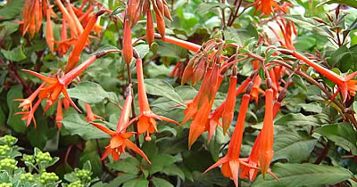 Fuchsien machen durch ihre schönen hängenden Blüten mit langem Kelch auf sich aufmerksam. Sie mögen Halbschatten; ideal ist ein Platz auf der Nordseite. Neben den kleinwüchsigen (z. B. Fuchsia procumbens) gibt es buschige und hochstämmige Arten, mit ein- oder mehrfarbigen Blüten. Fuchsia excorticata, die zu einem Baum heranwächst, kann bis 10 m hoch werden. Die meisten Pflanzen werden als Kübel- oder Topfpflanzen gehalten. Sie wachsen strauchartig und werden 20 – 80 cm hoch. Ausgepflanzte winterharte Scharlachfuchsien (Fuchsia magellanica) können 150 cm erreichen. Im Winter sterben die oberirdischen Teile ab, und die Pflanze treibt im Frühjahr neu aus.