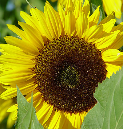Die Sonnenblume hat nicht nur ein sonnenähnliches Aussehen, sie richtet auch ihren Blütenstand nach der Sonne. Verantwortlich dafür ist ein Stoff, der die Pflanze auf der beschatteten Seite stärker wachsen lässt. So wendet sich der Stängel zur Sonne. Dies sollten wir uns selber auch angewöhnen, ganz nach einem chinesischen Sprichwort: "Wende dich stets der Sonne zu, dann fallen die Schatten hinter dich".